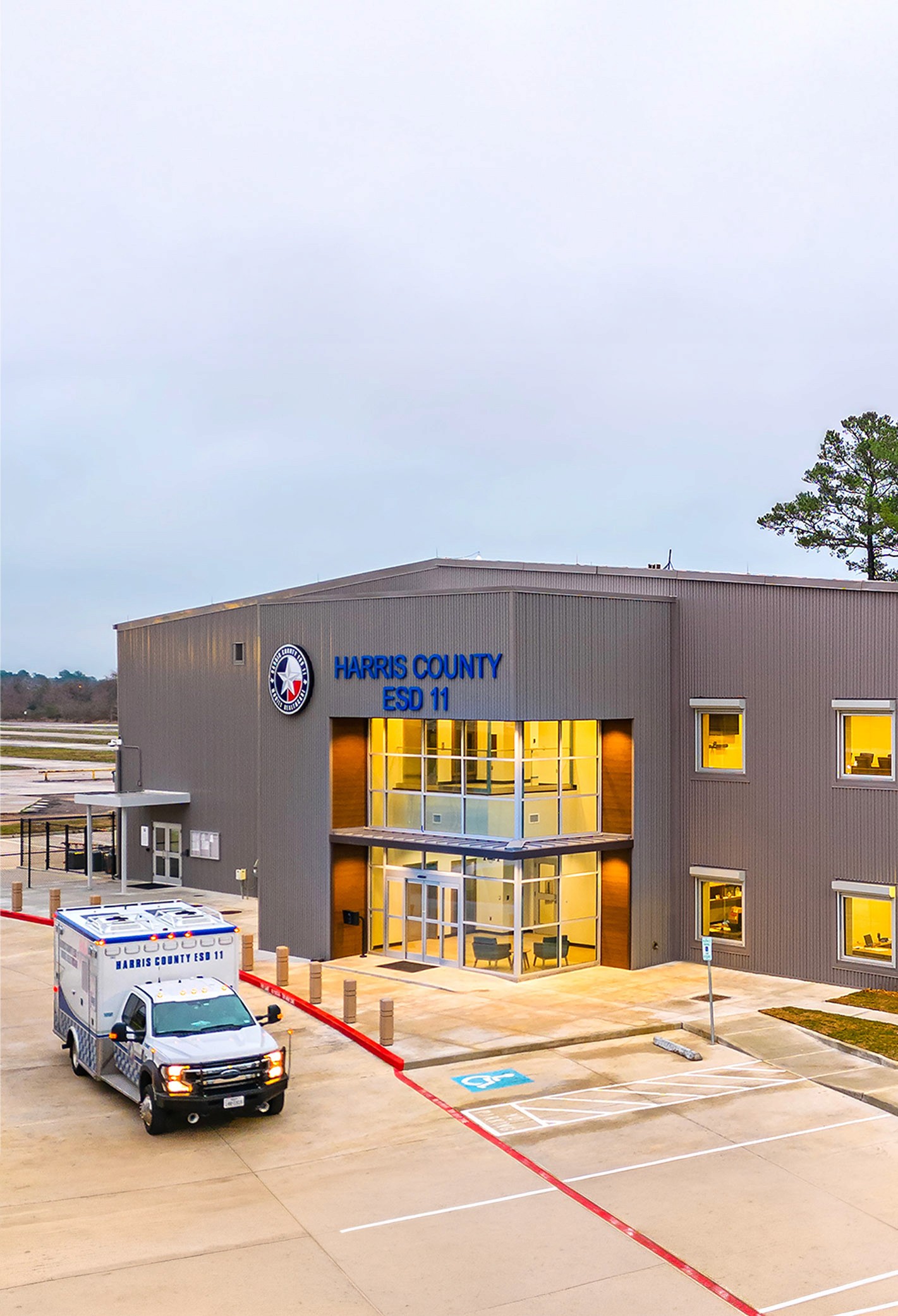 This project serves the community in Spring, transforming an existing site into a modern headquarters for emergency services, featuring administrative, dispatch, and operational facilities to enhance emergency response capabilities.