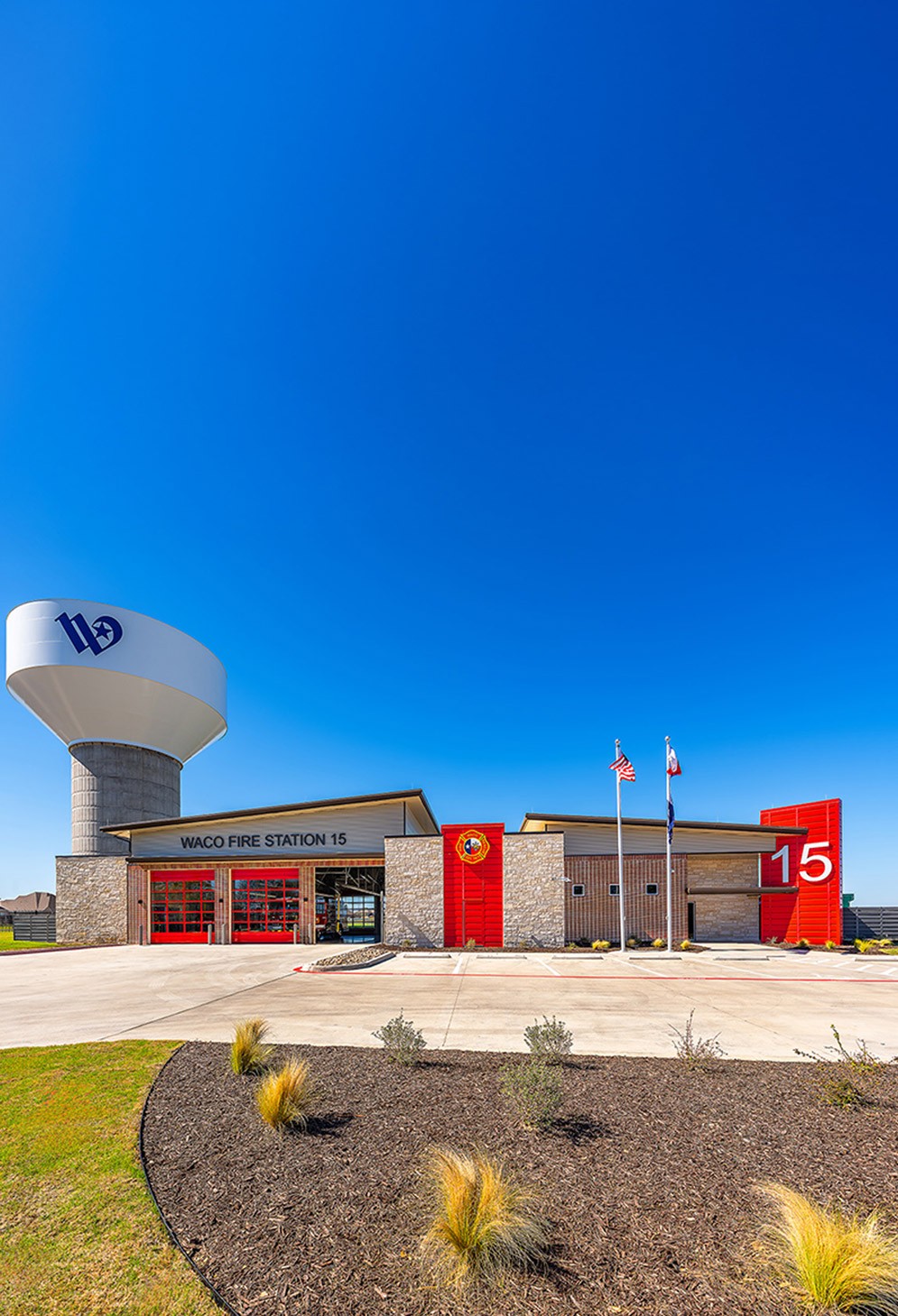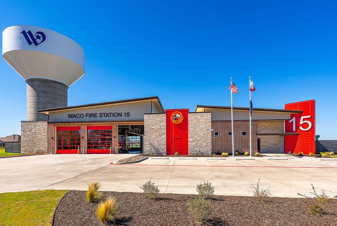 Waco Fire Station 15 enhances emergency response capabilities for the West Waco community, featuring advanced decontamination systems, individual dorm suites, and a modern design that promotes both functionality and team cohesion.