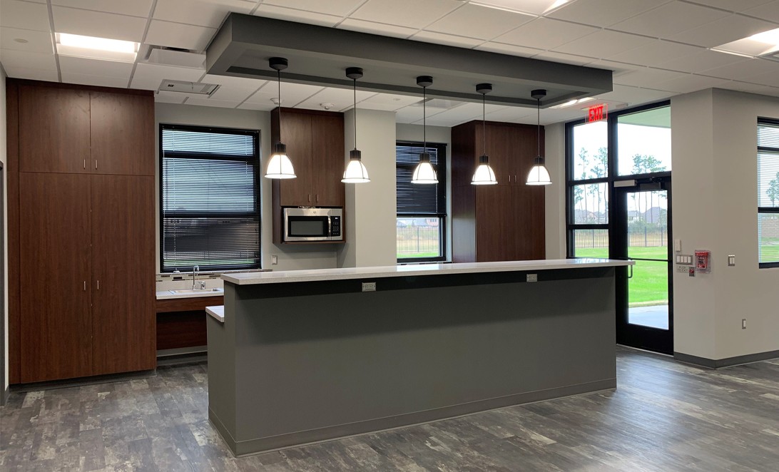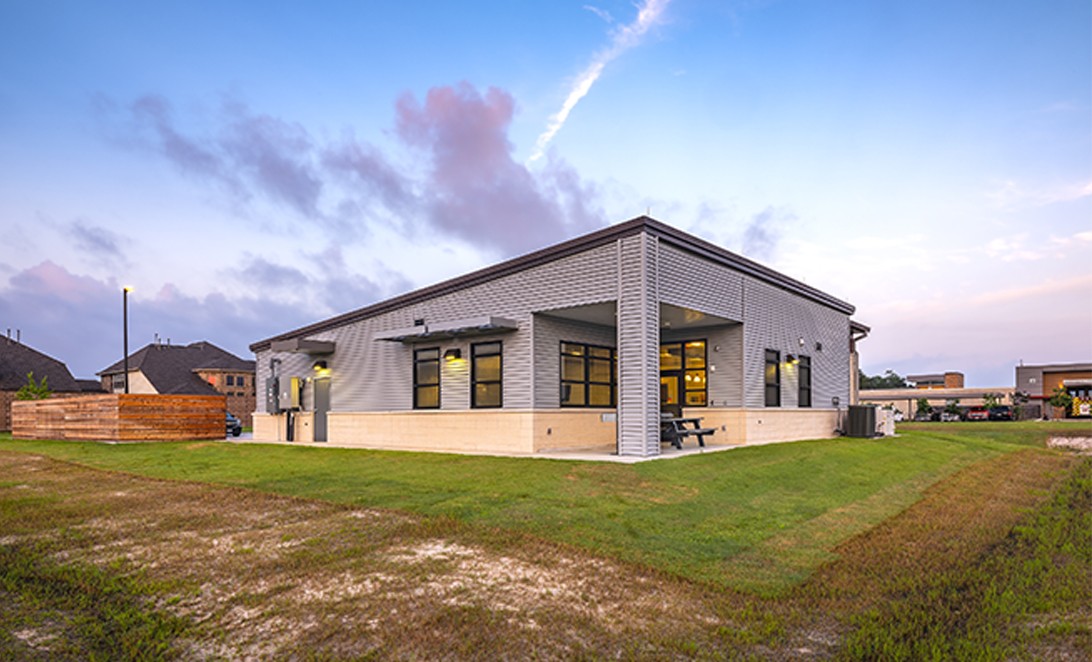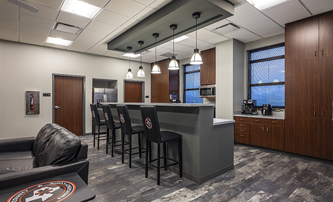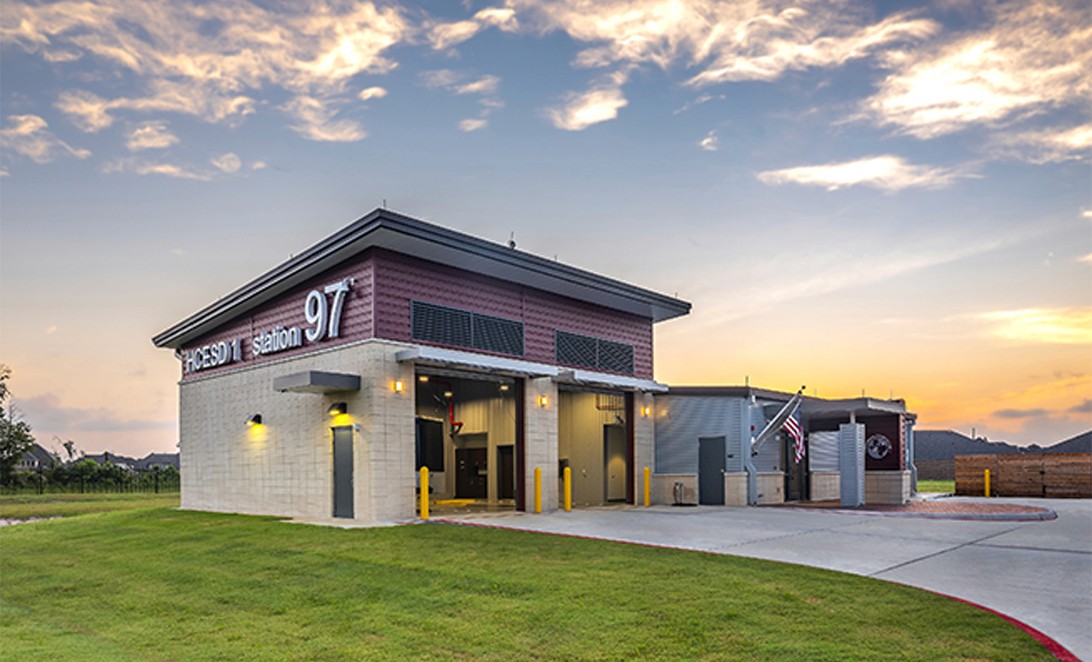 Harris County Emergency Corps (HCEC) EMS Station 97 is designed to provide efficient emergency medical services, strategically located behind a fire station. The project emphasizes a durable structure to facilitate quick emergency response rather than serving as a public showcase. It features a functional layout with separate living quarters to ensure uninterrupted sleep for personnel. The design includes open common areas and a covered patio, promoting team collaboration. The station serves the Humble community, ensuring reliable emergency medical services while maintaining effective coordination with the fire station. The architecture is practical yet modern, integrating essential utilities and security measures.